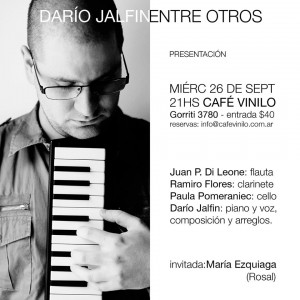 On wednesday day September 26th Dario Jalfin will present his latest album “Entre Otros” in Cafe Vinilo in Buenos Aires ( Argentina )